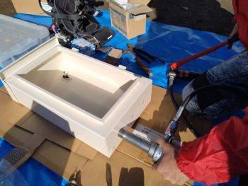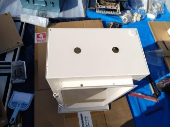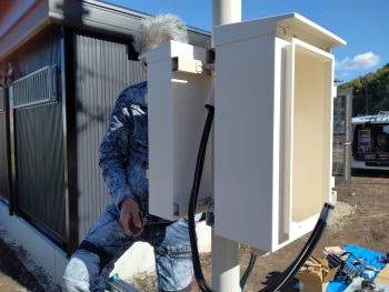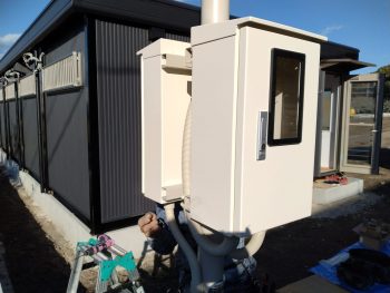 事務所と駐車場の、引込計器盤の設置を行いました。