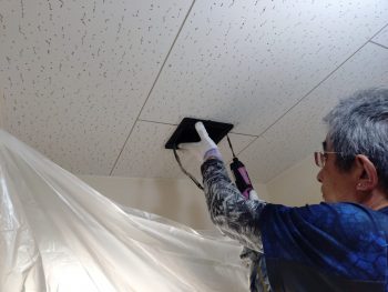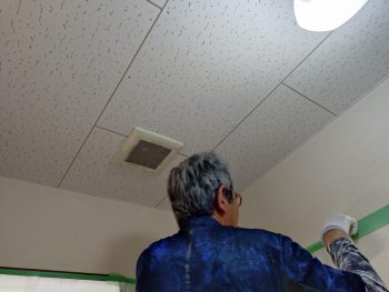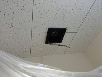 古い換気扇の後が隠れるように、新しい換気扇を着けます。