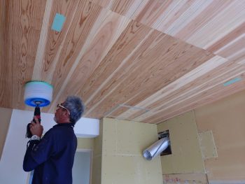 監督さんと打ち合わせた場所に印をして、穴を開けていきます。