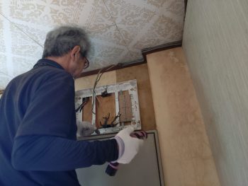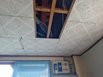 コンセント増設に際して、点検口が無い場合、天井を一枚剥がして電線を通す場合があります。
